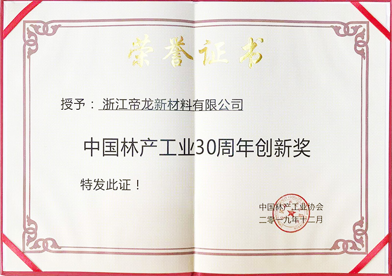 為了表彰帝龍新材對家居用品行業帶來的貢獻以及節約寶貴的森林資源。中國林產行業協會為帝龍頒發了四項榮譽稱號。